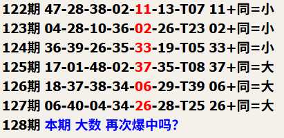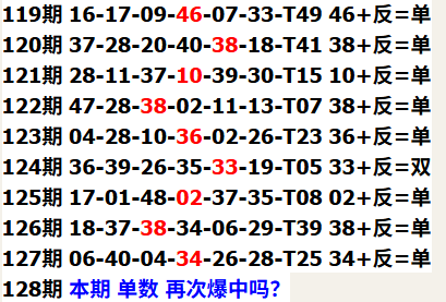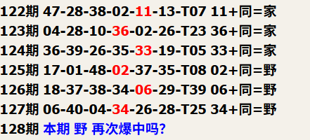 128期禁1肖:(兔)开:猪43准 128期禁1尾:(6尾)开:猪43准 128期禁1合:(08)开:猪43准 128期禁半波:(红双)开:猪43准